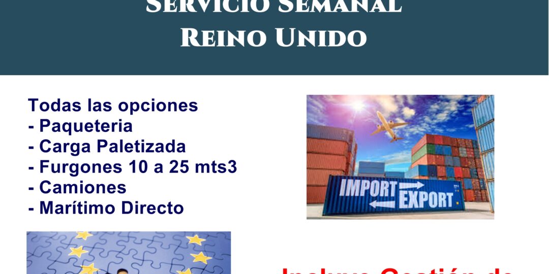 Euro-Cargo te ofrece un servicio de Transporte Internacional de Cargas y Mudanzas Internacionales desde España hacia Reino Unido y viceceversa, incluida Islas Baleares e Islas Canarias: Paqueteria desde 1 caja o maleta Carga Paletizada Furgones Directos de 10 a 25 mts3 Camiones de 30 a 100 mts3 Marítimo Grupajes y Contenedores Aéreo carga comercial y … Sigue leyendo Transporte de Mercancias a Reino Unido